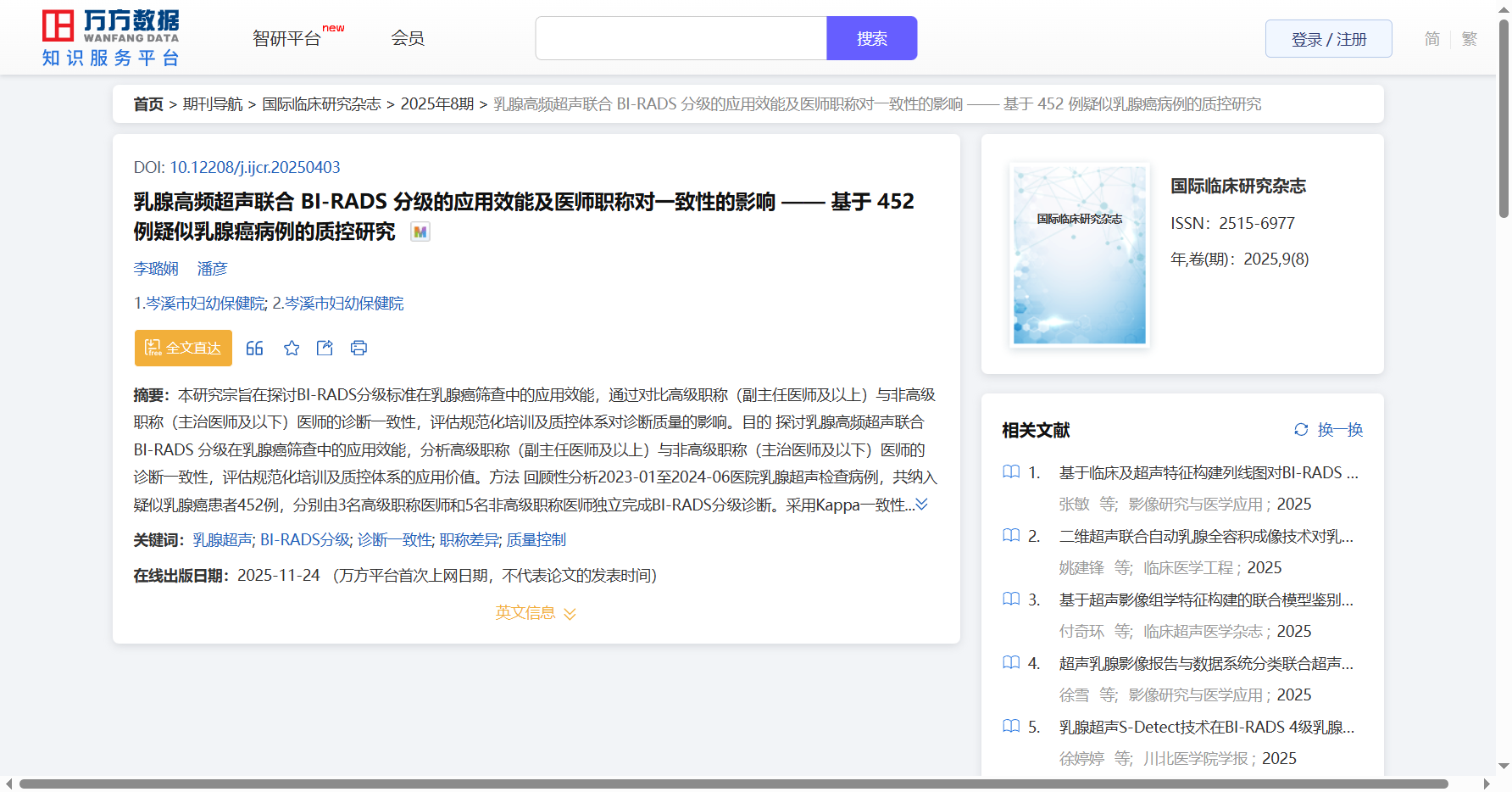 浏览量:499 全文下载:【PDF】 万方数据(WANFANG DATA)