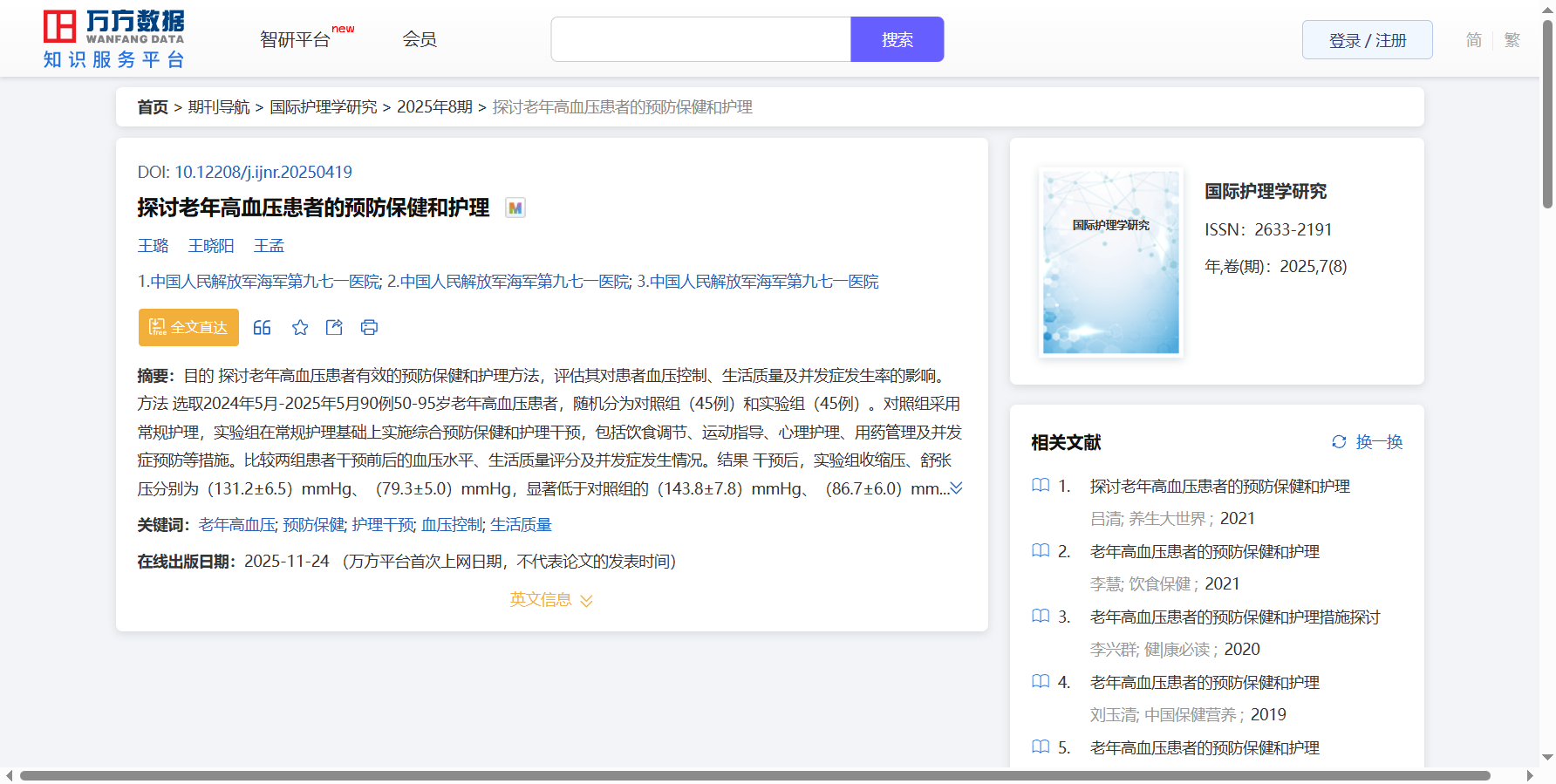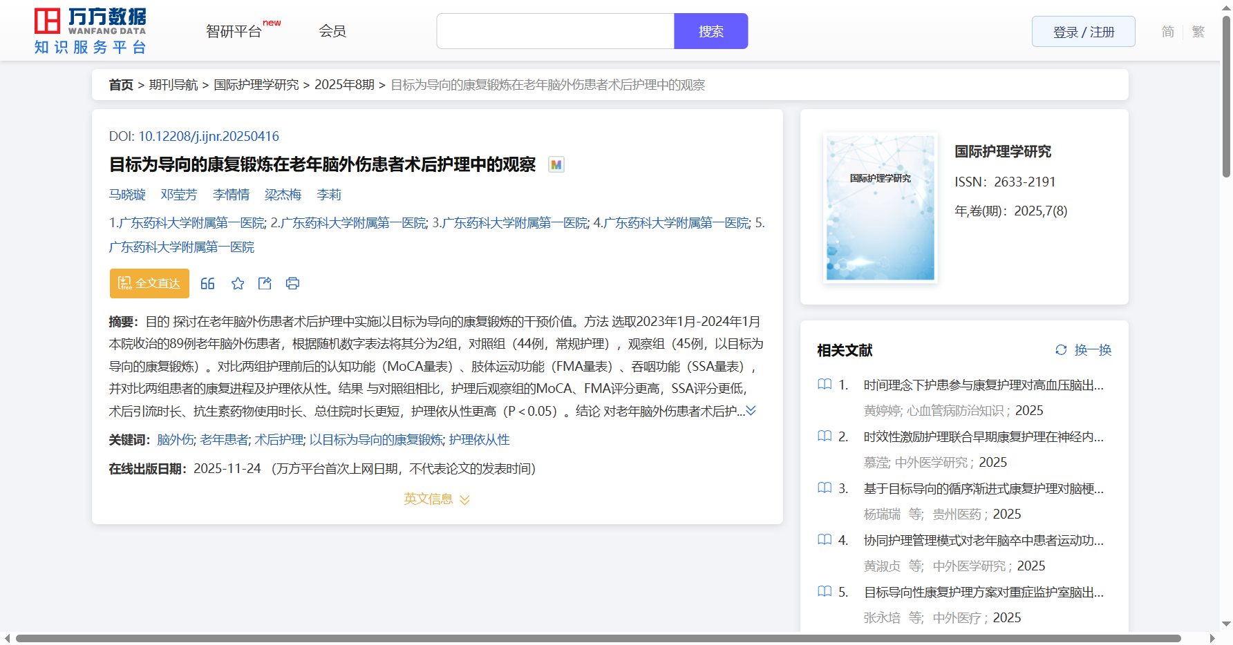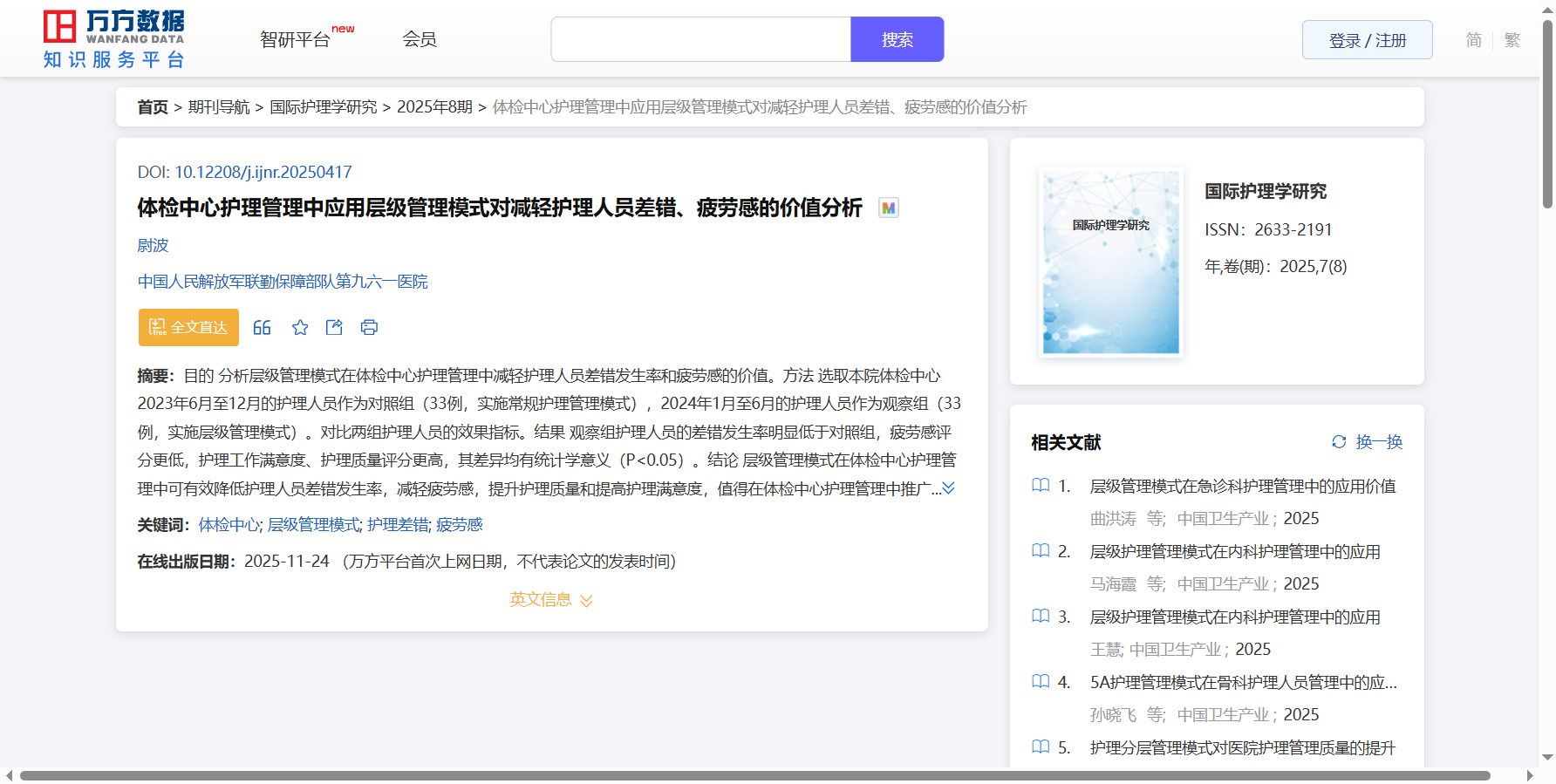 浏览量:425 全文下载:【PDF】 万方数据(WANFANG DATA)